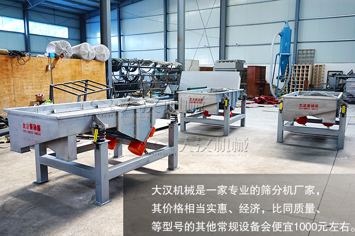大漢機械是家專業的篩分機廠家,其價格相當實惠、經濟,比同質量、等型號的其他常規設備會便宜1000元左右。