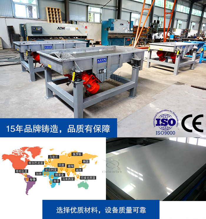 15年的經驗積累和技術沉淀,大漢及時實力更強,目前公司包括直線振動篩分機在內的所有設備均與通過ISO9001國際質量體系認證,產品質量好、性能佳、高效能耗低、效果顯著,目前已經暢銷俄羅斯、南非、印度、越南、加拿大等60個國家,并贏得了良好口碑。