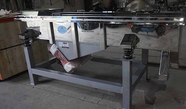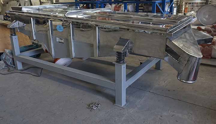 不銹鋼直線振動篩的篩面通常設(shè)計(jì)為5°-15° 的微小傾角,通過2-5 層不銹鋼篩網(wǎng)把濕的、易腐蝕的物料篩分為400目以內(nèi)。