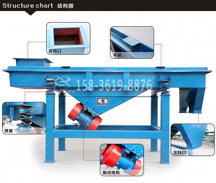5、電機臺座:安裝振動電機,使用前連接螺釘必須擰緊,特別是新篩機試用前三天、必須反復緊固,以免松動造成事故。