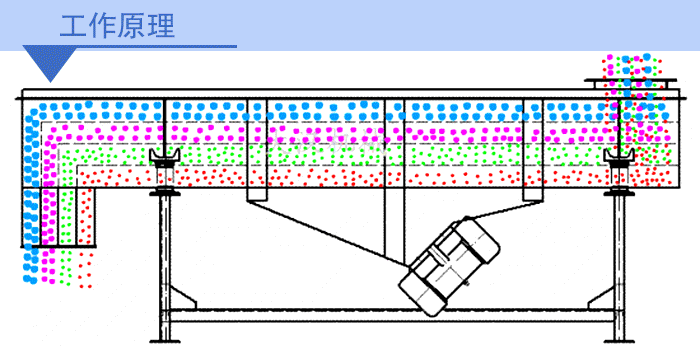 降溫式直線振動(dòng)篩是以“大漢牌”DZSF系列直線振動(dòng)篩為基礎(chǔ),在進(jìn)料口底部或箱體下側(cè)端增加了風(fēng)機(jī)降溫冷卻系統(tǒng),在進(jìn)料口加裝篩網(wǎng)及小型排料口使大顆粒結(jié)塊物料從小型排料口中排出,該裝置可有效攔截大顆粒并緩沖物料對(duì)篩網(wǎng)的沖擊,延長(zhǎng)篩網(wǎng)使用壽命(該裝置針對(duì)部分物料,不需要可去除)。物料在進(jìn)入設(shè)備時(shí),位于進(jìn)料口底部或箱體下側(cè)端的風(fēng)機(jī)降溫冷卻系統(tǒng)對(duì)其進(jìn)行降溫作業(yè),兩臺(tái)振動(dòng)電機(jī)相對(duì)篩面有一傾角,在激振力和物料自重力的合理作用下,降溫后的物料在篩面上被拋起、跳躍式向前做直線運(yùn)動(dòng),通過(guò)多層篩網(wǎng)過(guò)濾不同規(guī)格的篩上物及篩下物,分別從各層的出料口排出,達(dá)到篩選和分級(jí)的目的。